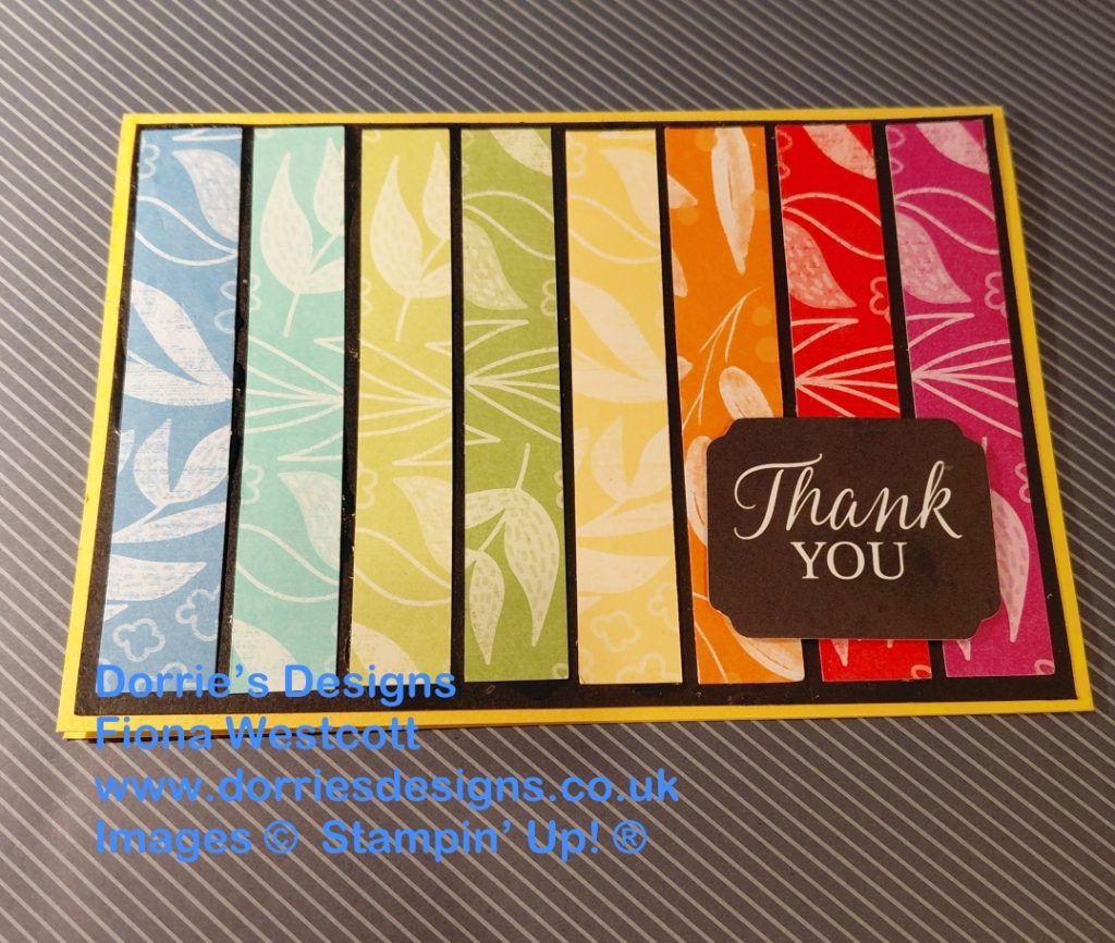 For my second two Bright Floral Thank You cards I started by cutting the remainder of the piece of Basic Black card stock I had used for my first two cards and cut this at 6.25 cms x 14.4 cms.
